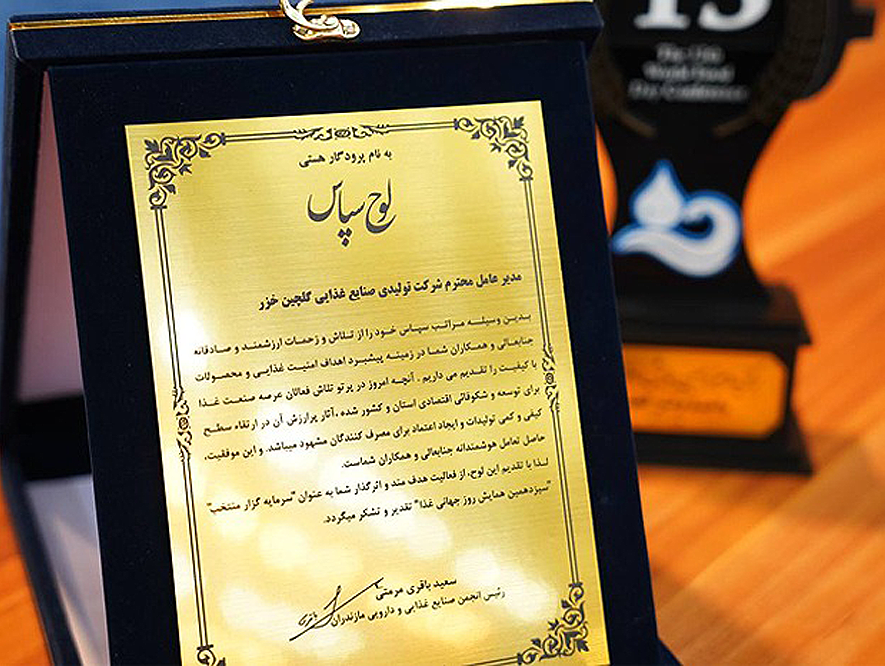 گلچین خزر بابل «سرمایهگذار منتخب» و «واحد برتر کیفیت» صنایع غذایی مازندران شد